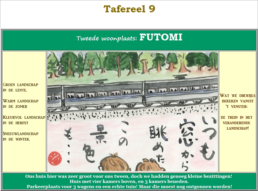 | Tafereel 3 | Shigeko's hobby's | Tafereel 11 | Kawachinagano | Tafereel 16 | Maaltijden |
