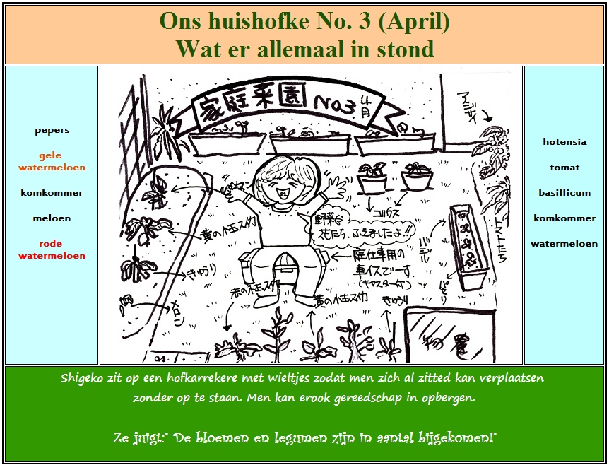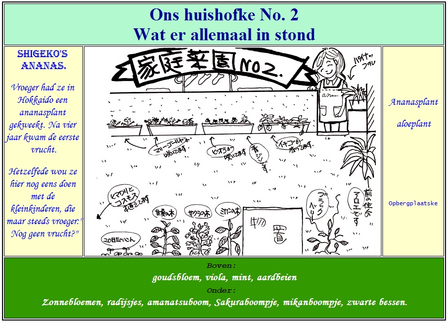 | Tafereel 3 | Shigeko's hobby's | Tafereel 11 | Kawachinagano | Tafereel 16 | Maaltijden |